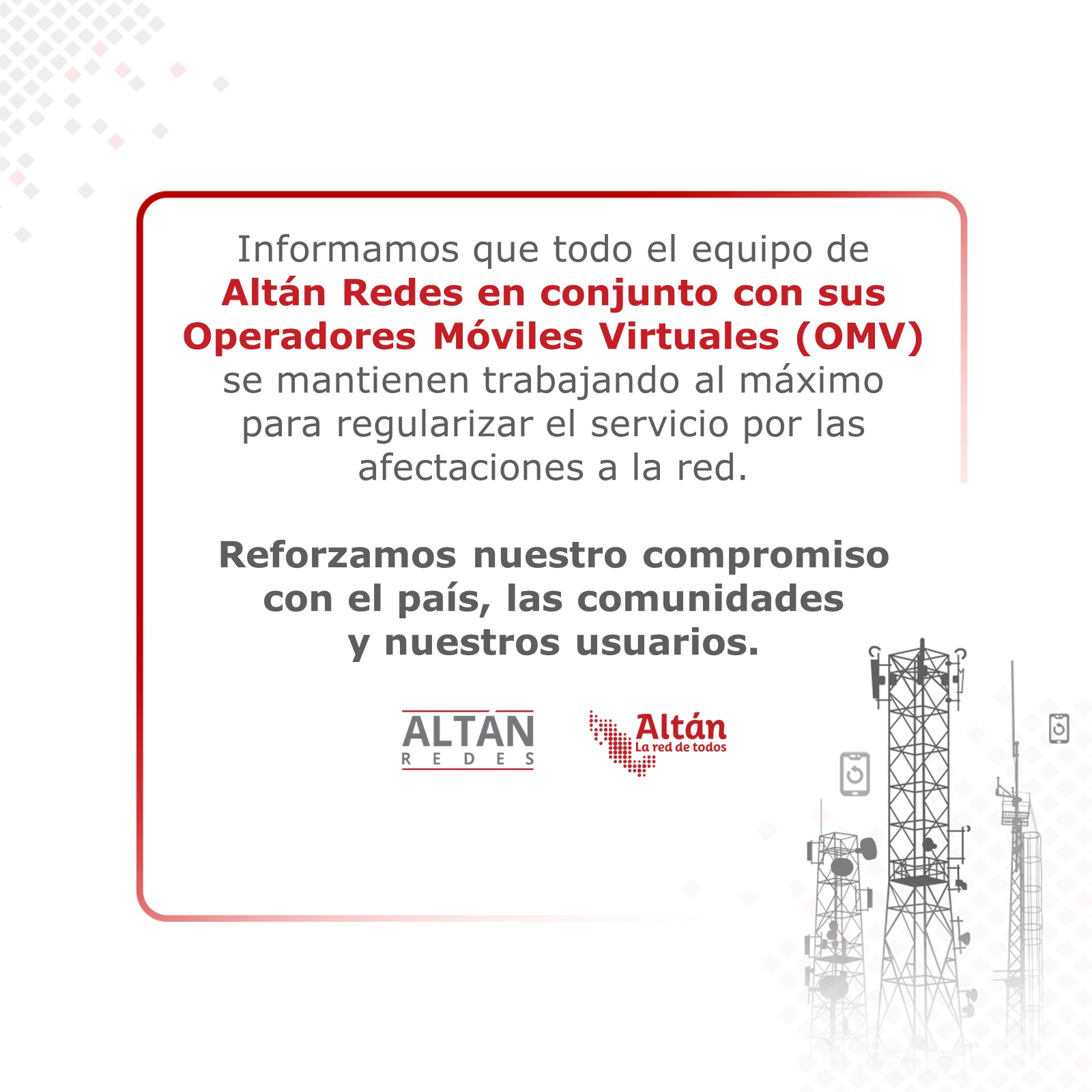 Altán Redes es la empresa mexicana que se dedica al diseño, despliegue, operación y mantenimiento de la Red Compartida en México que ofrece un servicio 4.5G para llamadas y navegación celular, así como Internet fijo.